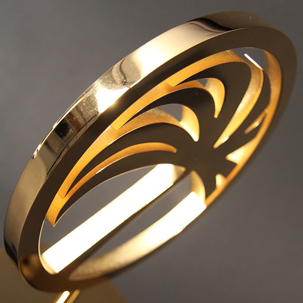 Pierced polished gold plated aluminium combined with a 2 tier cast black acrylic base to form this distinctive perpetual award.