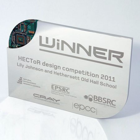 Each award is personalised by laser engraving directly onto the nickel plated surface.