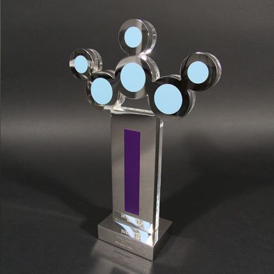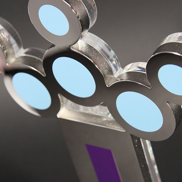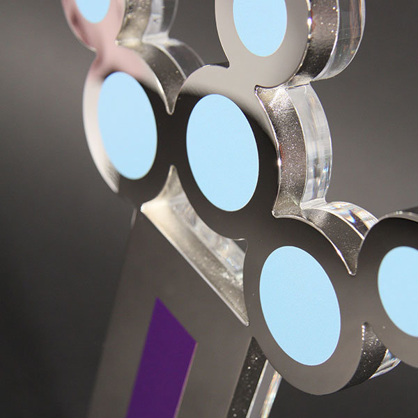 Stunning mirror finished aluminium and clear acrylic award with full colour printed graphics.