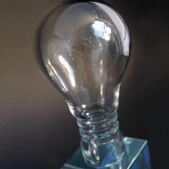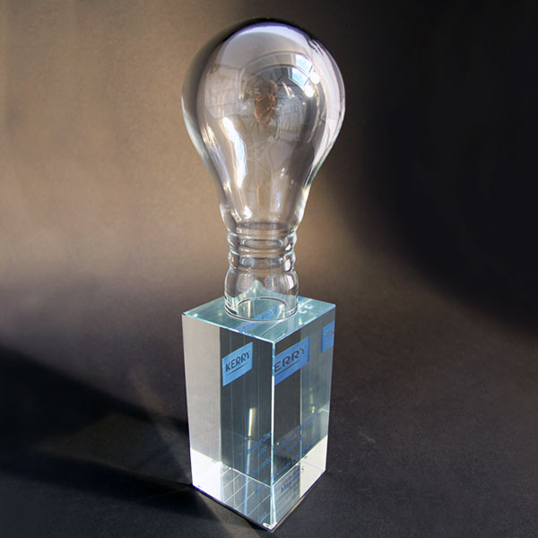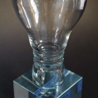 Hand made glass light bulb combined with a layered glass base to form a unique bespoke award.