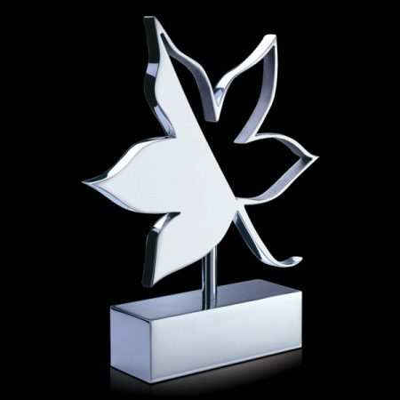 Bespoke Leaf Award profiled from polished nickel plated aluminium.