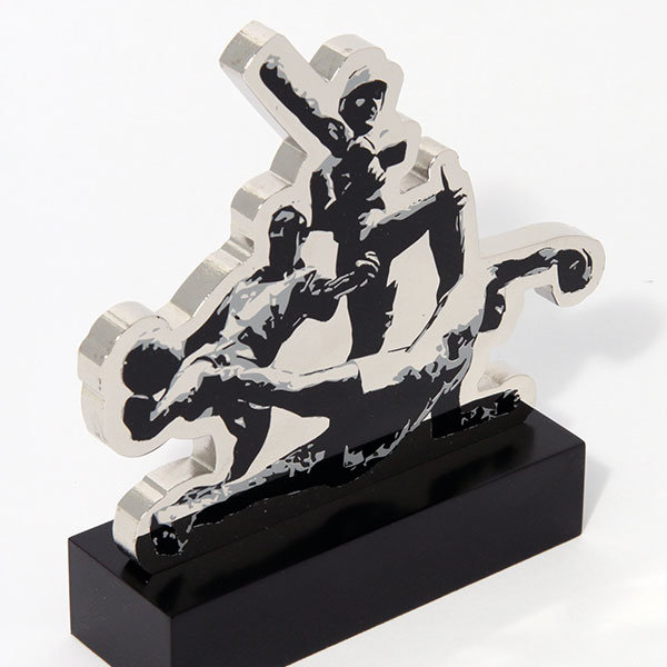 Brushed nickel plated aluminium, distictive digital print and black wood combine to form an impressive bespoke award.