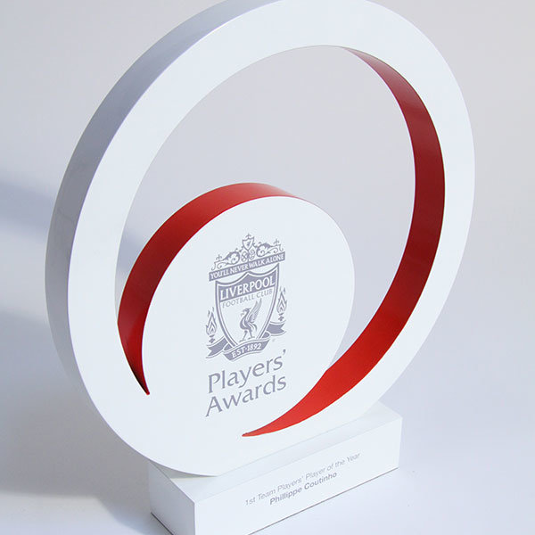 Stunning bespoke sporting trophy manufactured using profiled aluminium with a painted finish on the front and contrasting colour on the inner edges.