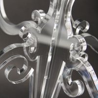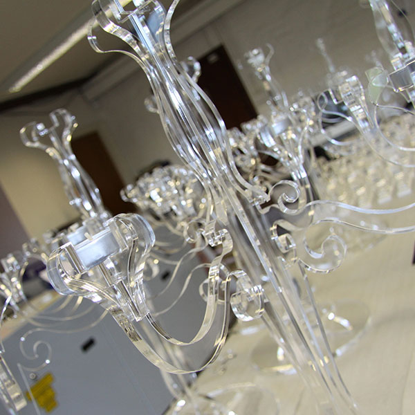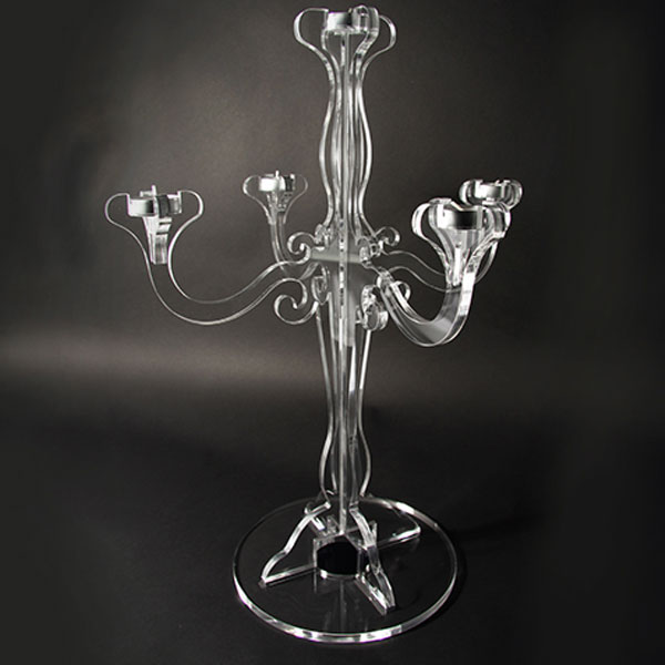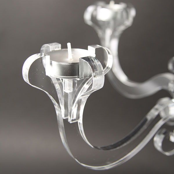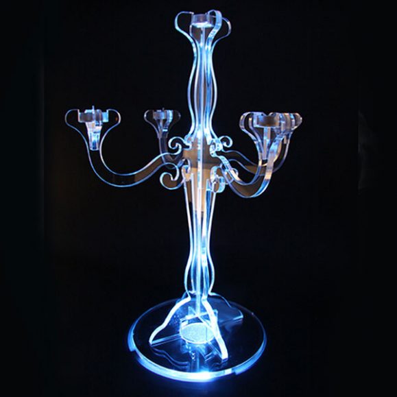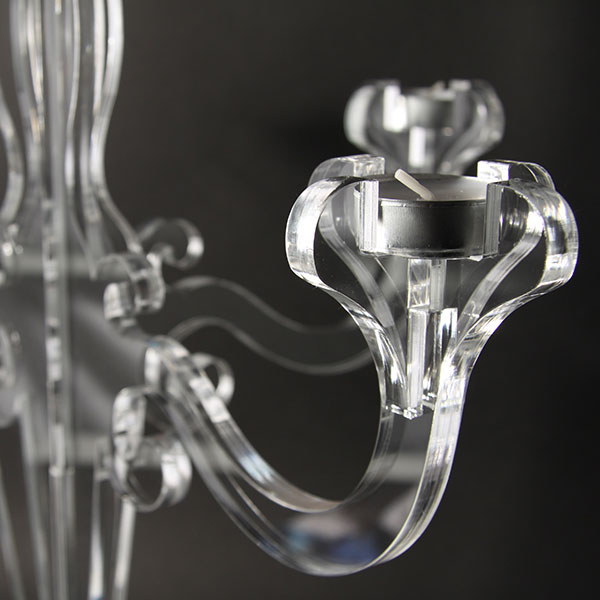 Stunning laser cut acrylic candelabra. Each piece slots together perfectly to create the 3D candelabra and can be flat packed for easy storage between events.
