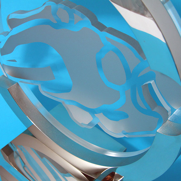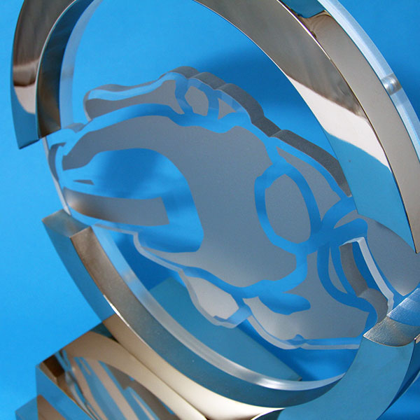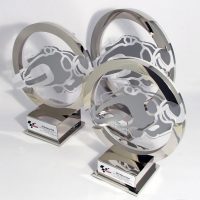 Polished nickel plated aluminium combined with clear acrylic to form an impressive bespoke award.