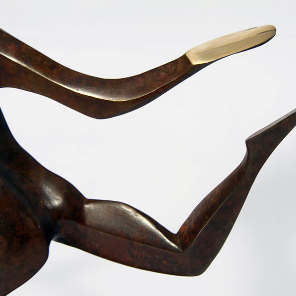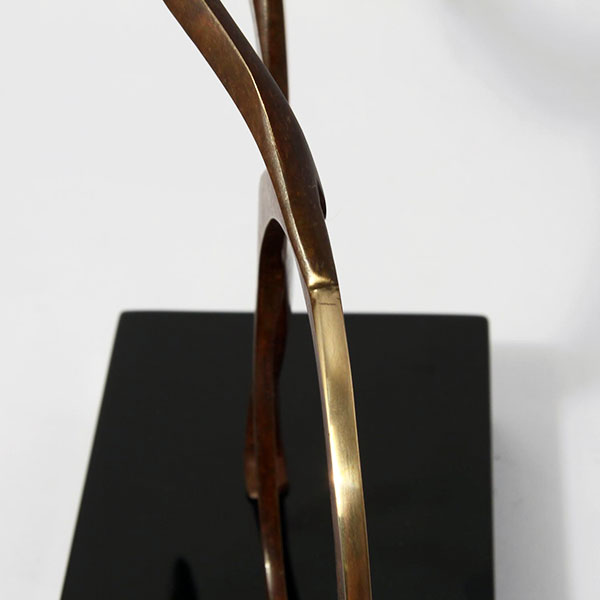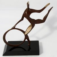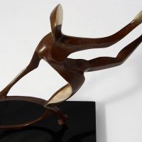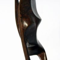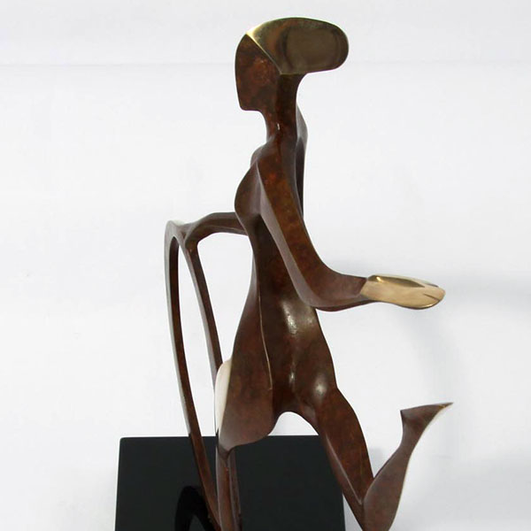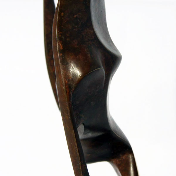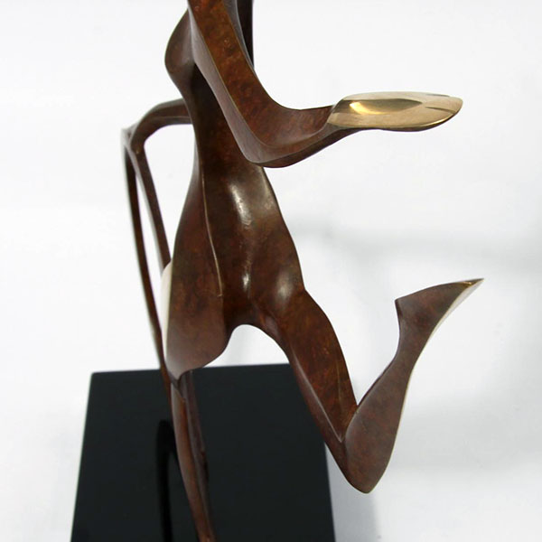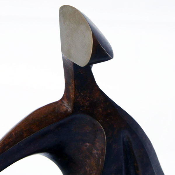 Unique bronze cast sculpture with slate base. After the casting process the figure is polished then a patina added to create this distinctive finish.