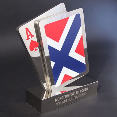 Stunning polished aluminium trophy with bold full colour print and laser engraved text detail.