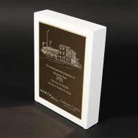 Each award is personalised by laser engraving directly onto the metal plate.