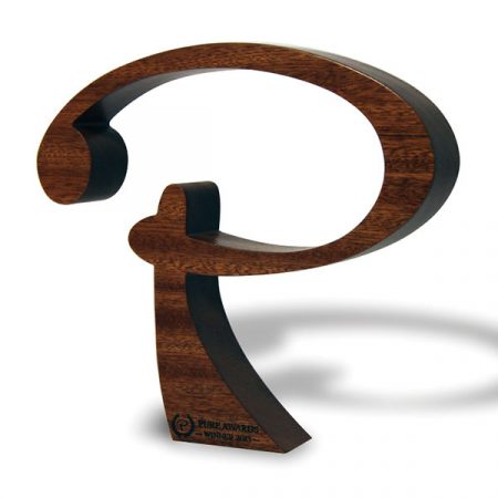 Impressive profiled wood award. Waterjet cut from 30mm thick solid wood.
