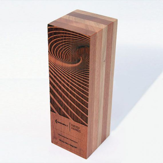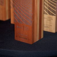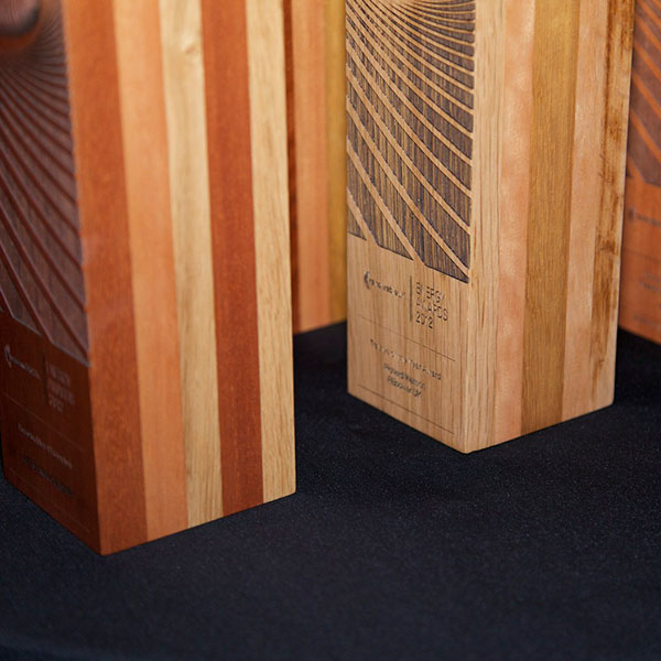 Each award is personalised by laser engraving directly onto the surface of the wood.