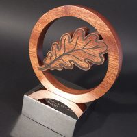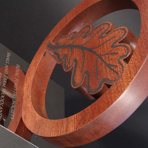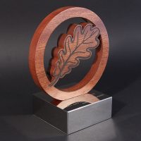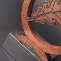 Profiled wood with engraved detail combined with a polished aluminium base to form this eye-catching award.