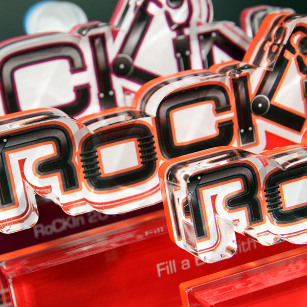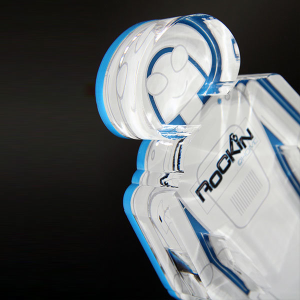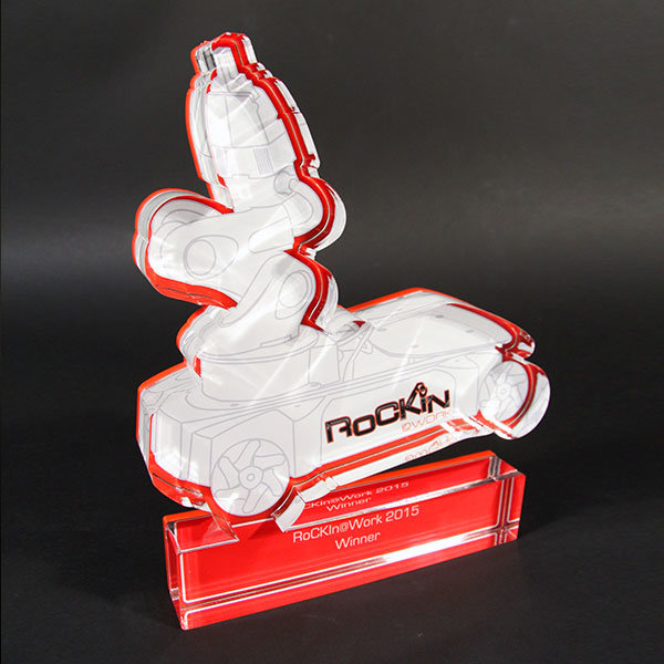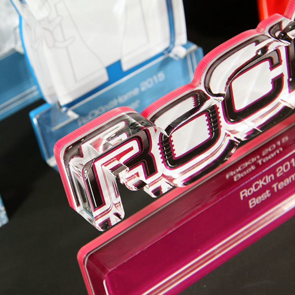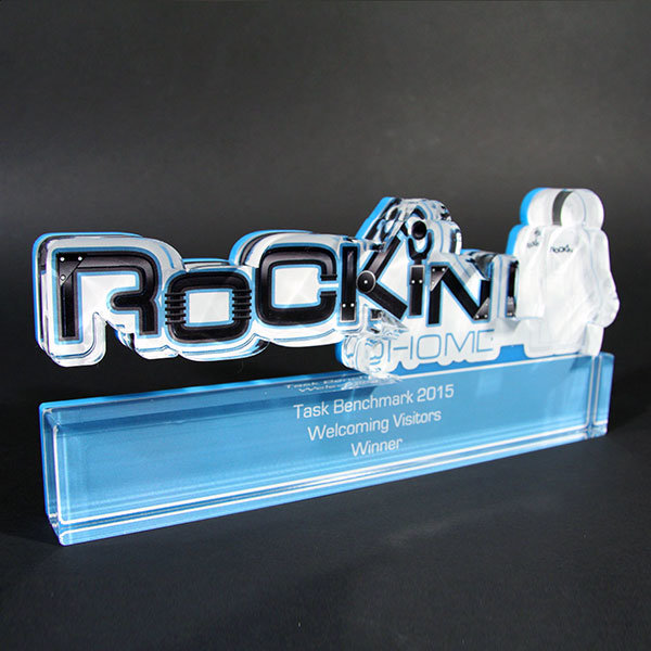 Fun acrylic award made using multiple layers of acrylic, laser cut to form this bespoke award.
