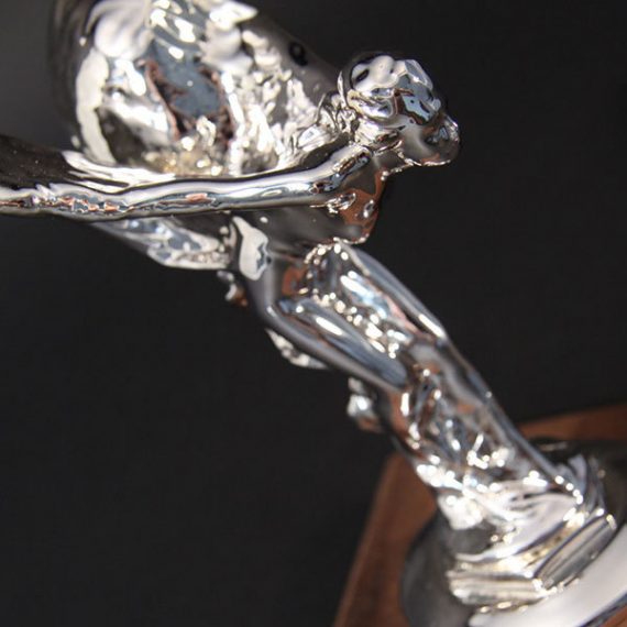 3D printed ‘Spirit of Ecstacy’ with a sprayed silver surface finish or unique ‘rusted’ finish.