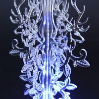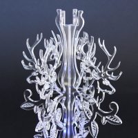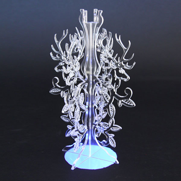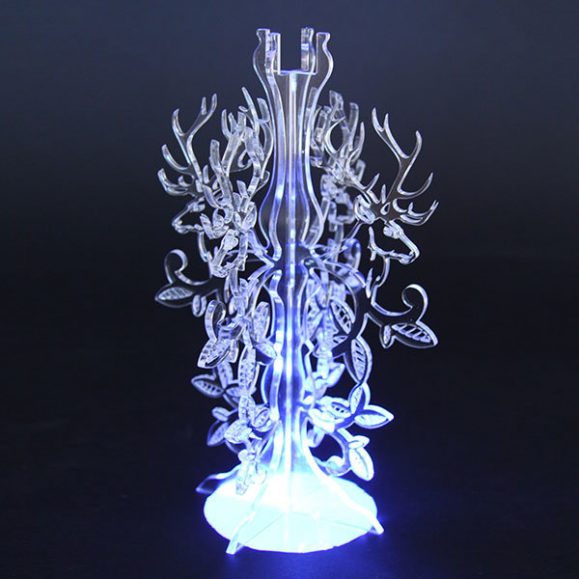 Distinctive laser cut acrylic candelabra. Each piece slots together perfectly to create the 3D candelabra and can be flat packed for easy storage between events.
