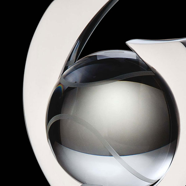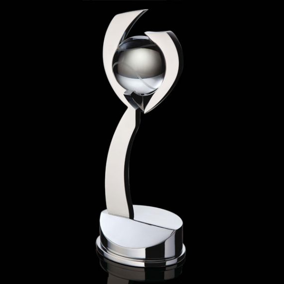 Polished nickel plated aluminium combined with a crystal tennis ball to form this impressive sporting award.