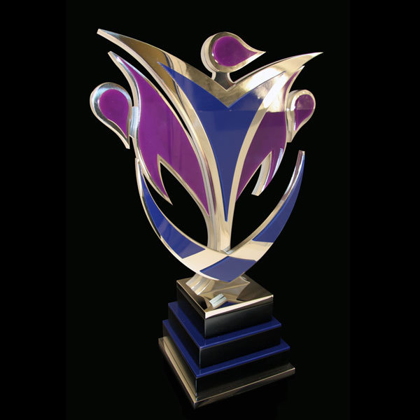 Standing almost half a metre tall and depicting the League’s emblem, this stunning award is manufactured using acrylic layers, precision mounted on polished nickel plated aluminium and on a tiered wood and acrylic base.