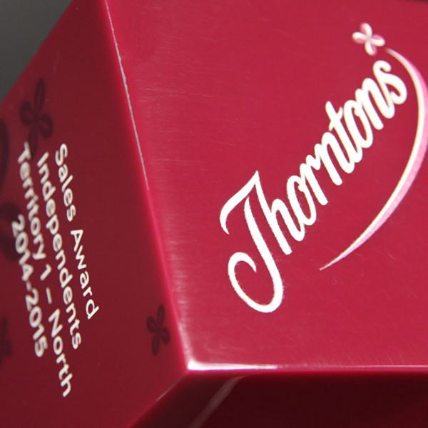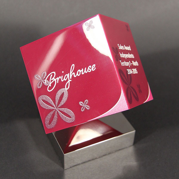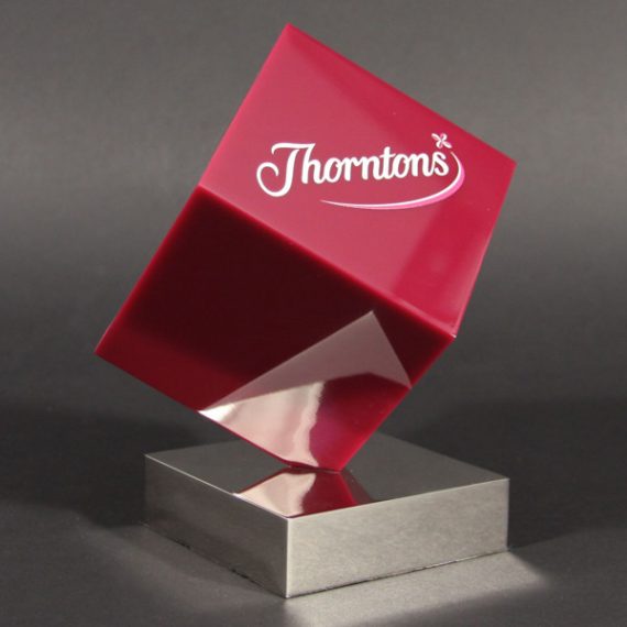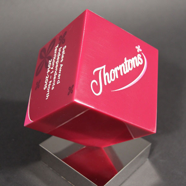 Eye-catching cast acrylic cube with full colour logo detail printed on three sides.