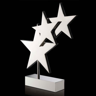 A timeless and appropriate star design, made from aluminium and finished in highly polished nickel or gold plate.