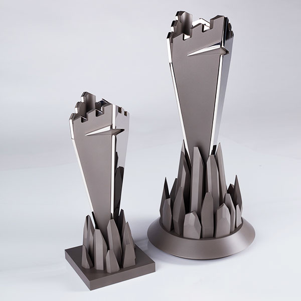 The UKLC League of Legends Trophy is mega in its production complexity. A mammoth feat of engineering, requiring 96 hours of precision machining alone, the UKLC iconic tower erupts out of shards of rock, creating a momentous and powerful trophy.
