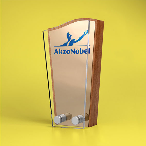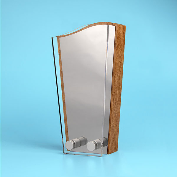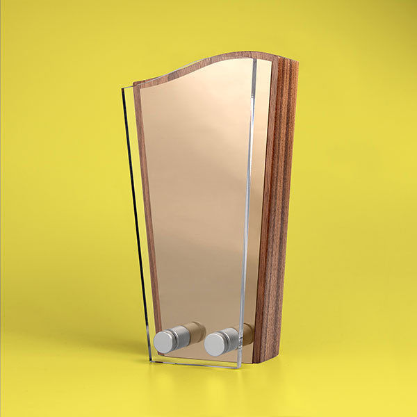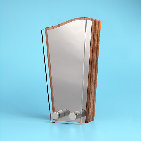 Wave Wood Trophy with Metal Face Plate & Acrylic Front