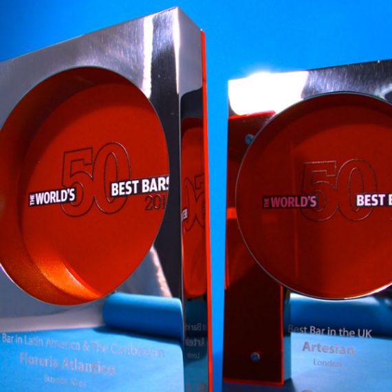 Distinctive ‘Polo’ style award with vibrant red acrylic backing and full colour printed event graphics.