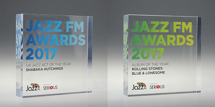 The Jazz FM Awards is a joint collaboration between the radio station and Serious. The cachet of winning one of the EFX-made trophies is proof of the event’s international standing. Stylishly simple, and a manageable single-hand-hold size, the trophy design is manufactured in thickset, clear acrylic and finished with crisp, encapsulated print detailing.