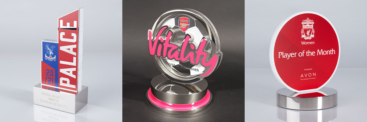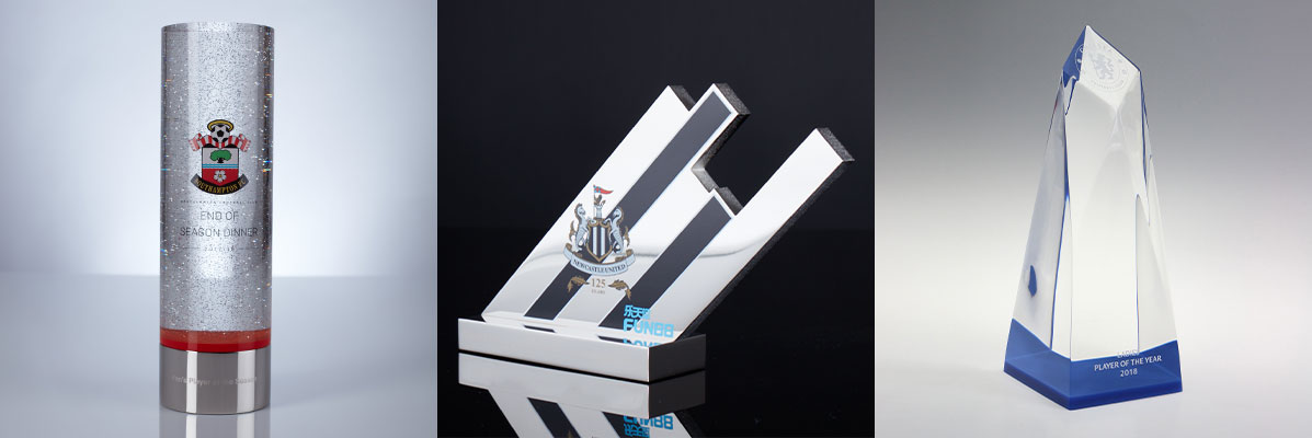 With the benefit of computer aided design and 3D printing technology, the scope for high quality trophy design and manufacturing has no boundaries, and today more people are looking for unique shapes and more modern materials for their football awards.