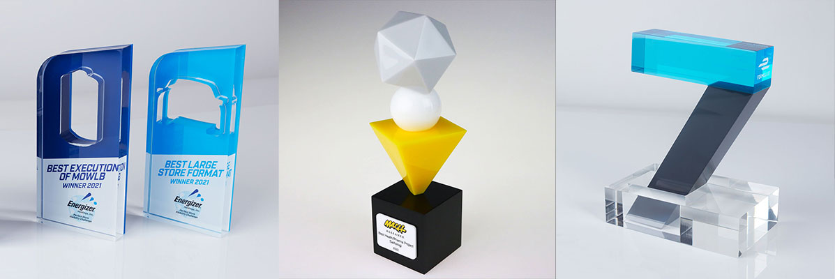 Because it can be produced in a vast range of colours, is the perfect platform for digital printing, and can be shaped in a huge number of ways, an acrylic award opens the door to a much wider range of design styles.