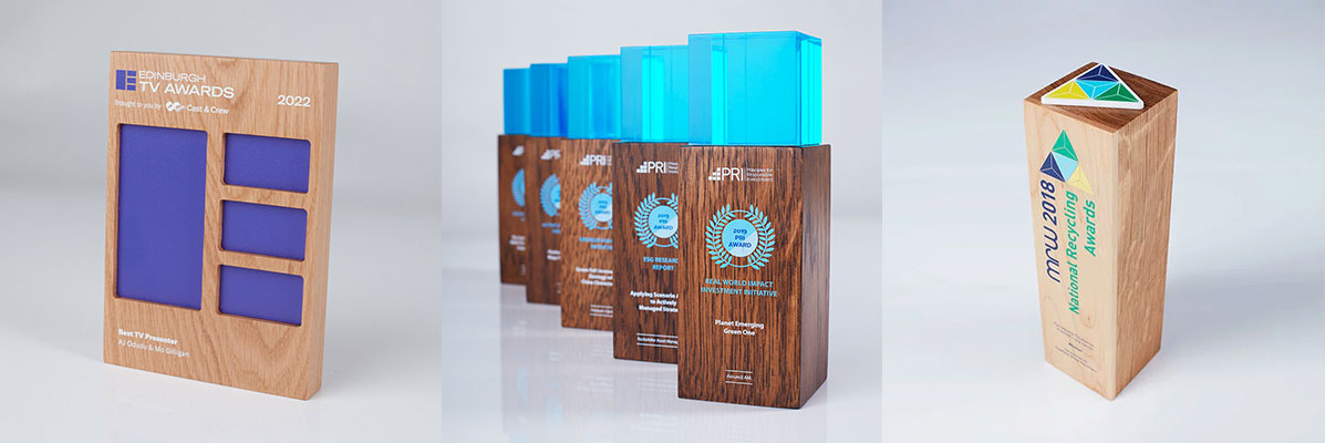 And when it comes to eco friendly awards, there’s a lot of different choices out there too. You can go for recycled acrylic or aluminium, or a naturally sustainable material like wood or stone. Or you can choose a trophy designer who uses sustainable manufacturing processes and power.