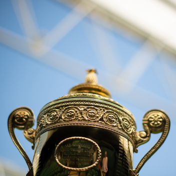 Both the tennis trophy for the Men’s and Women’s Singles championships at Wimbledon are antiques and well over 100 years old. The Venus Rosewater Dish features mythological decoration, whilst the Gold Cup is topped with an ornate pineapple. There are no sponsor logos in sight and little thought to the space required for recording the winners’ names.
