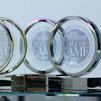 The latest award we produced for the motor industry was the What Car? Car of the Year Awards. That red question mark is legendary. We produced it out of acrylic, which we then mounted on gold plated, engraved plinths. Winning manufacturers proudly display them and they are featured in no end of advertising and marketing campaigns. Winning one of those is a top accolade indeed!