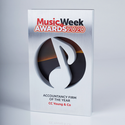 The Music Week Awards trophies 2020 were manufactured by Special EFX in brushed aluminium and pierced through to reveal the silhouette of the central, quaver note. Set off against a dramatic back drop, printed on black acrylic, the trophies are arresting to look at and impressively weighty to hold.