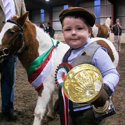 Fenton Kirkland is a bit of a star, despite being only three years old. This picture of him clutching a gold trophy almost half his size recently appeared in many of the national newspapers. He won the gold cup in the championship category and best of show rosette at the Sunnybank Equestrian Centre Showing Extravaganza, beating off stiff competition from all the competing adults.